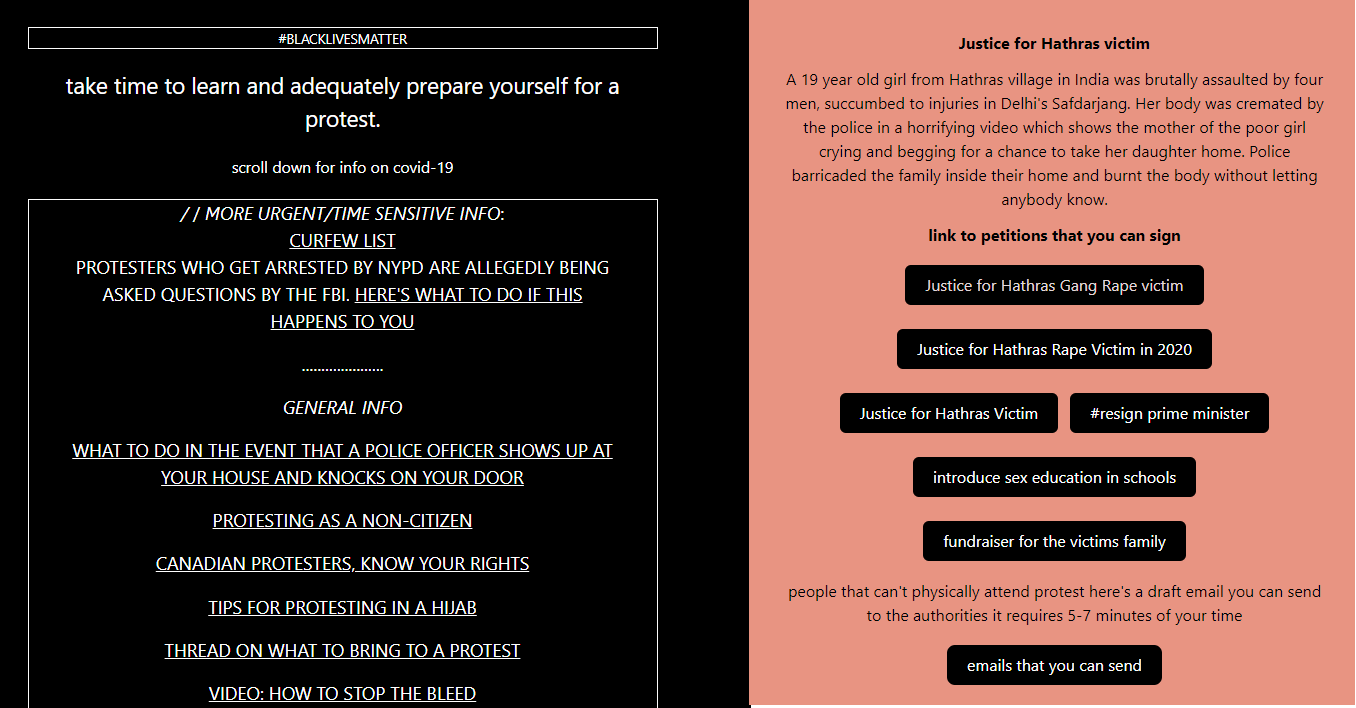 The Black Lives Matter protests creatively used the one-page site application Carrd.co.