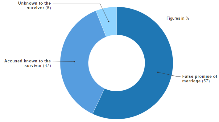 The maximum number of rapes in Uttar Pradesh in 2019 — 57% of all cases — took place on the false promise of marriage, reveals the latest data released by the National Crime Records Bureau (NCRB). The analysis of data further shows that in 37% of cases in the state, the accused were known to the survivor, while around 6% of perpetrators of the crime were unknown (Source)