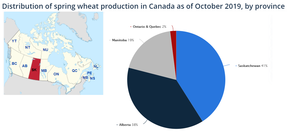 Before we go ahead, it is important to understand the contribution of Saskatchewan in the overall wheat production by Canada. It is the highest wheat-producing province.