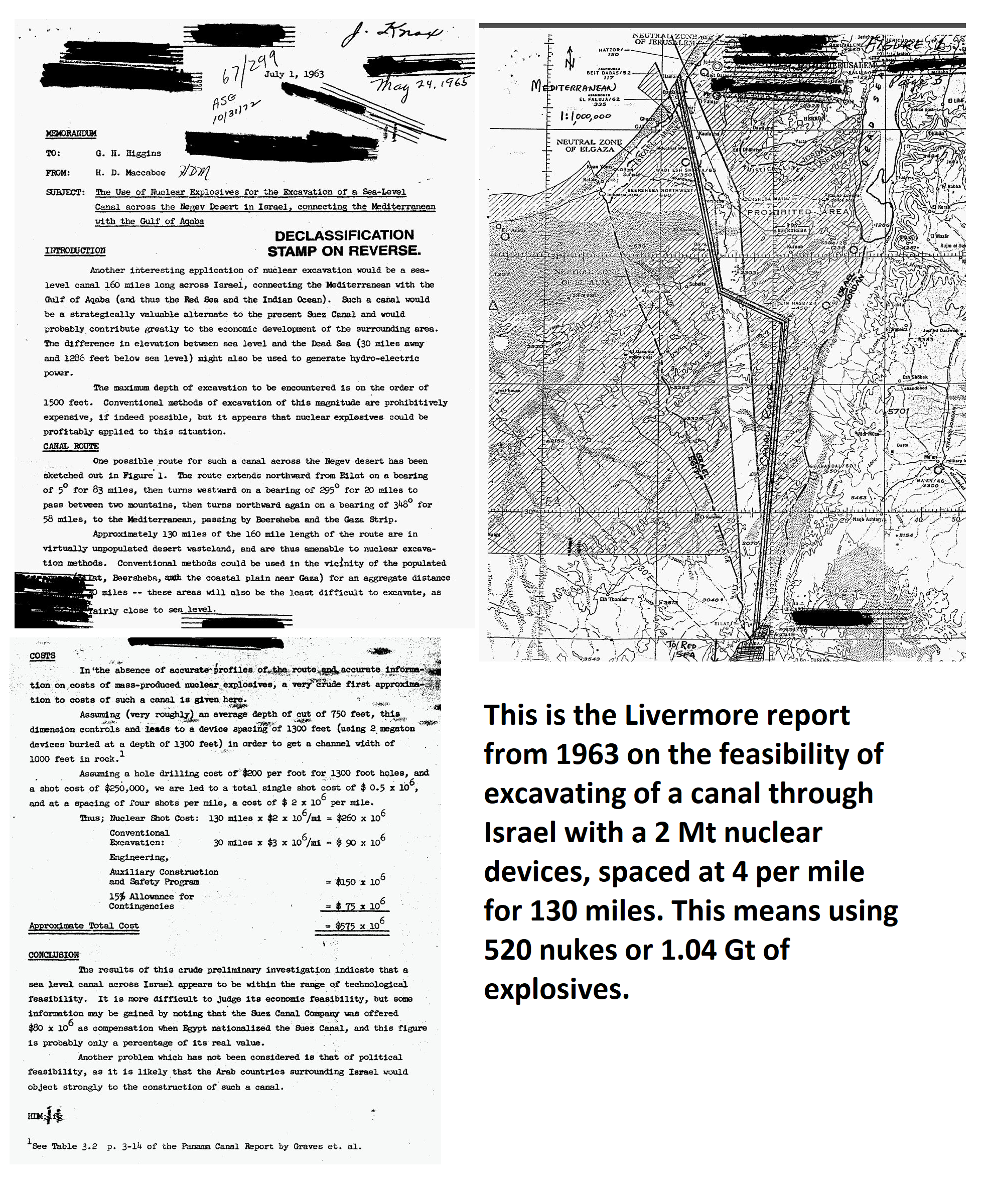 The proposed route was through Israel’s Negev Desert which was listed as 130 miles of “virtually unpopulated desert wasteland, and are thus amenable to nuclear excavation methods” but there was always a glaring concern with this proposal which should be pretty obvious to anyone who is familiar with global politics. The report stated “political feasibility, as it is likely that the Arab countries surrounding Israel would strongly object to the construction of such a canal.” (Source)