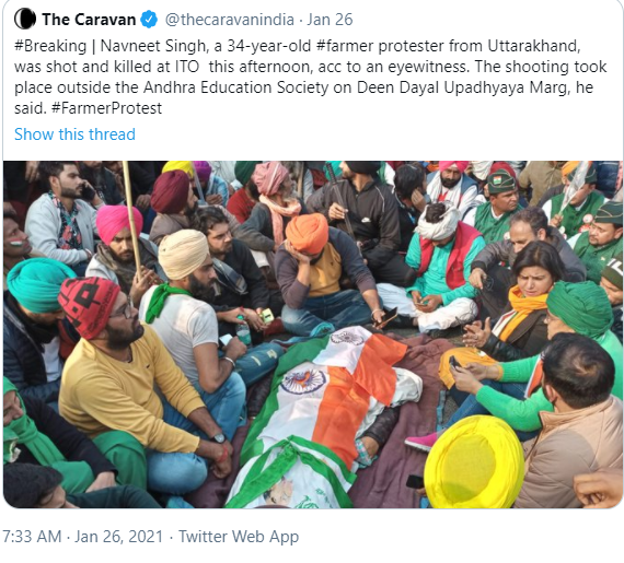 The news took the country by storm. Sardesai even went live on India Today, explaining how the young farmer was shot by cops and why this would become a really big movement as farmers from across the country would seek ‘Justice for Navreet’. (Source)