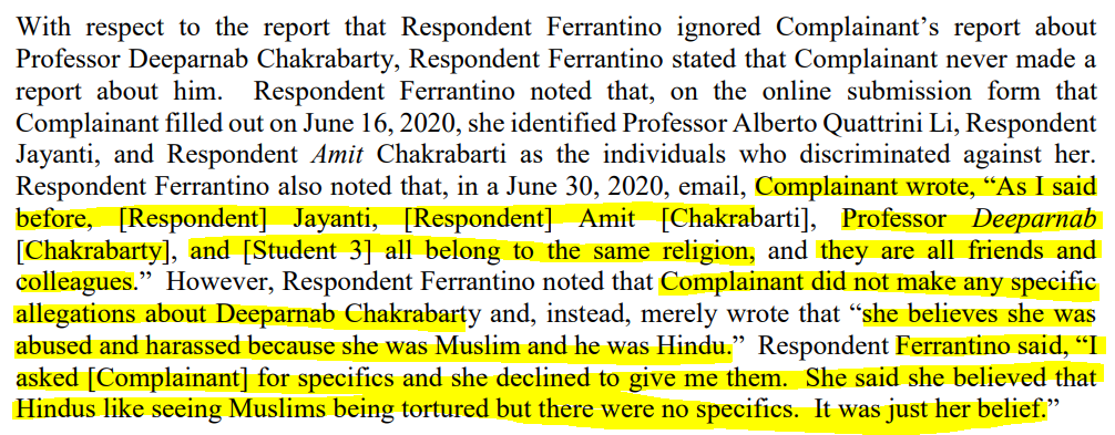Only that she was Muslim and the professor and student against whom she had filed the complaint were Hindus - ergo they were friends! - and obviously against her because “Hindus like seeing Muslims being tortured”.