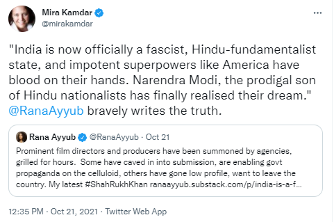 She recently wrote a piece there where she claimed through selective anecdotal accounts that India is a fascist state under the current PM Narendra Modi. The culprit - Hindus.