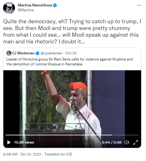 So, Modi’s reaction that Navratilova wanted, had already been given in 2014 even before Modi became the PM. Something that no one on Twitter told the political activist tennis player.