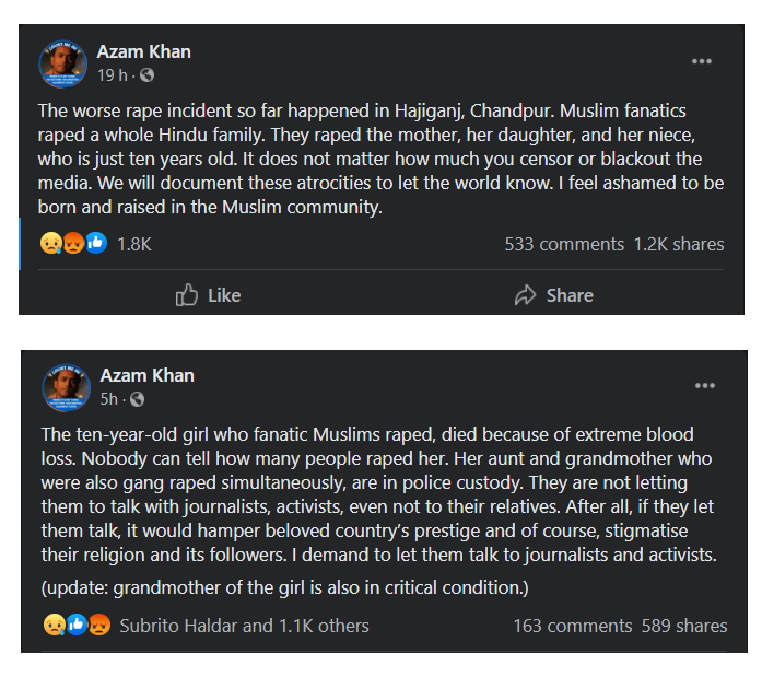 A Facebook user, Azam Khan, shared his anguish and the details of the crime. Interestingly, the post is not available now (Source)