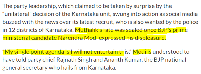 In fact, Muthalik was thrown out of BJP in 2014 (within 5 hours of joining the party) because the then PM candidate Narendra Modi was unhappy with him being part of the BJP.