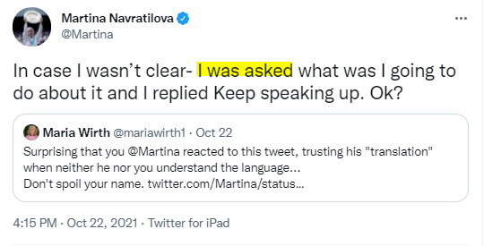 Actions in statecraft are given a spin by those who don’t know enough but have a personal prejudice against a certain political hue and establishment in their own country. That Navratilova’s own hatred for Trump was harnessed by “someone” is obvious from her reply to Maria Wirth.