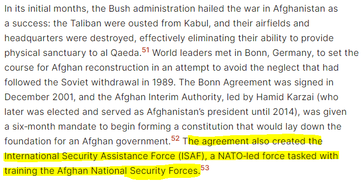 Because the central core of these forces made up of the Northern Alliance soldiers had all but destroyed the Taliban and Al Qaeda out, until the US establishment betrayed them in November 2001.