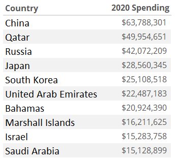 In 2020, the top 10 spending countries were: