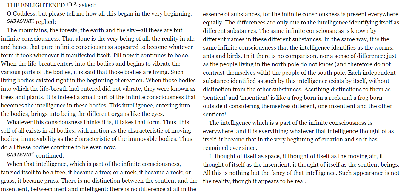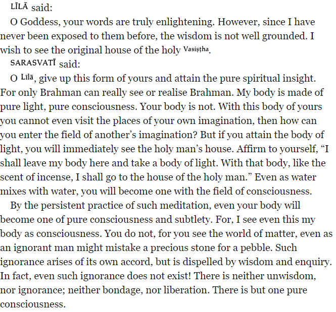 Meanwhile, in Yoga Vasistha, Goddess Saraswati shares knowledge that is as far away from dogma, as Abhijit Sarkar is from human rights.