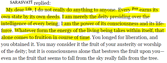 “I am merely the deity presiding over the intelligence of every being.” The Goddess explains. “I am the power of its consciousness and its life force”