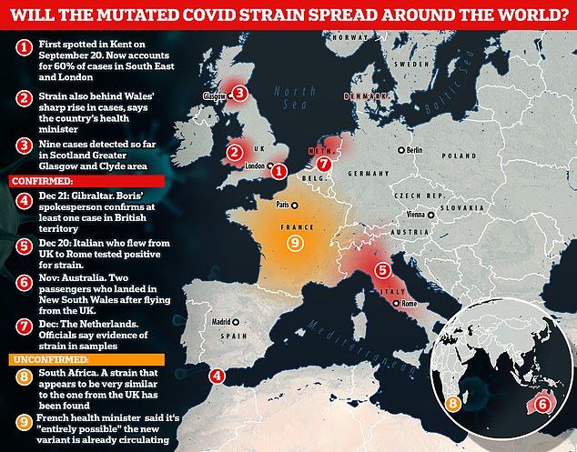 A new strain of Coronavirus - called VUI-202012/01 - has spread from the UK to five countries - Denmark, Gibraltar, the Netherlands, Australia, and Italy - already. There have been some reports of it being in Belgium as well, but they are as yet unverified. In South Africa, a similar strain to the one in the UK has been found, although it’s tough to say whether it has the same origin.