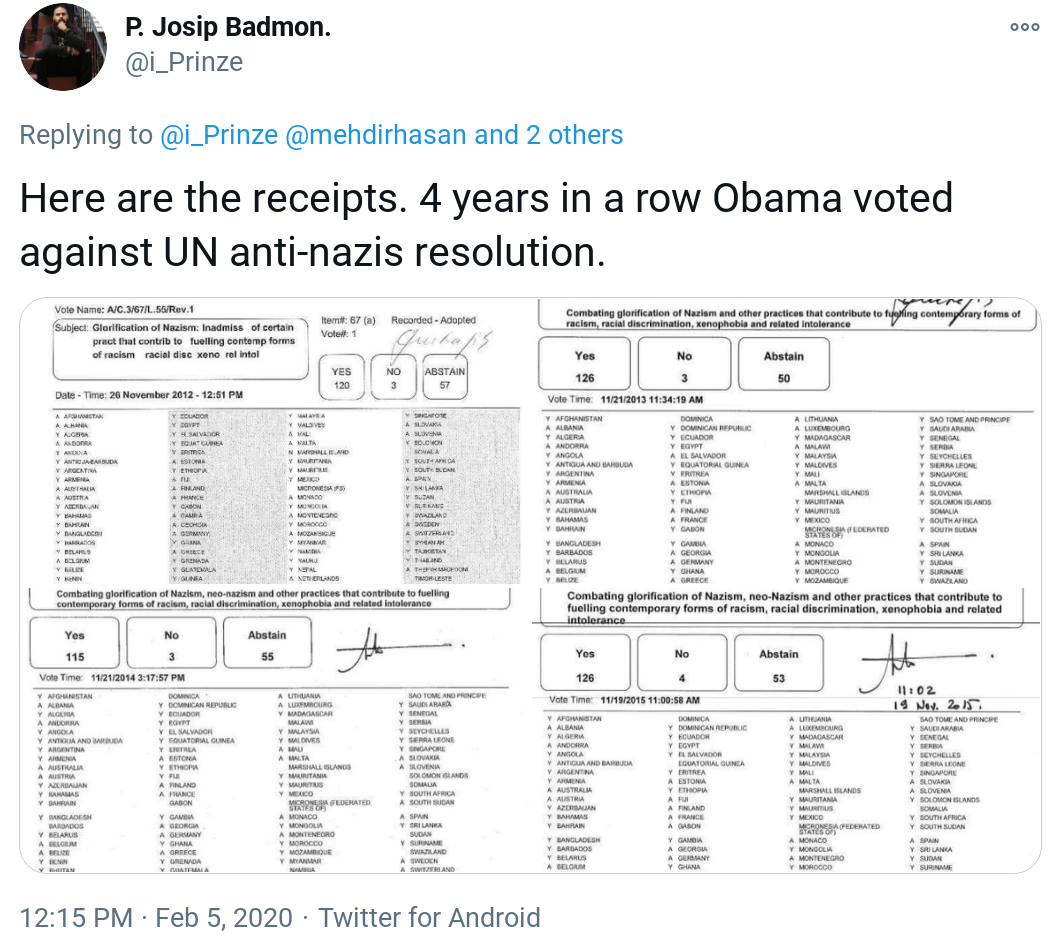 For some reason, these three countries have been consistently voting against the attempt to combat the glorification of Nazism and neo-Nazism.