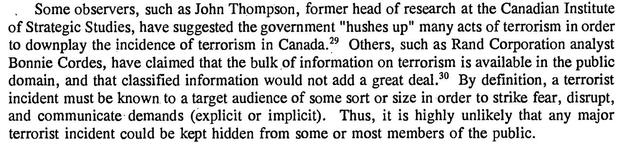 The fact is that Canada has always been the hotbed of terrorism, as the government has constantly brushed terrorism under the carpet.