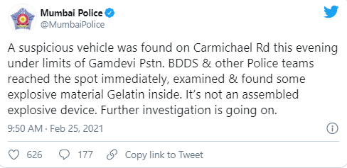 According to Mumbai Police, some number plates were also found inside the SUV. The number plates inside the vehicle reportedly matched vehicles used in the security detail of Mukesh Ambani. Police have also revealed that a letter was found from the vehicle but its content has not been made public yet.