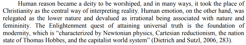 This was the darkening age that set on the entire European continent, which saw a reaction in the form of the “Age of Reason.” A reaction that assumed the Christian ethos to be the universal experience of the entire world. So, their concepts - the way they defined it - had to be accepted as “Universal” as well.