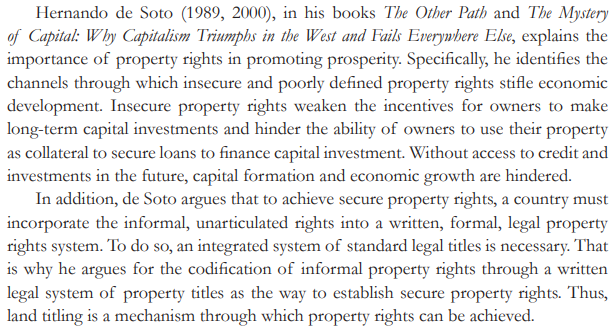 The popular Peruvian economist Hernando de Soto has discussed this in his various works.