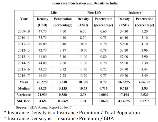 While insurance penetration is measured as the percentage of insurance premium to GDP, insurance density is calculated as the ratio of premium to population (per capita premium).