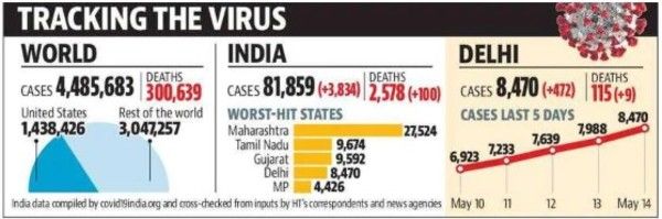 The infections from the virus are increasing. Maharashtra has crossed 1000 deaths figure. Here is a nice comparison between India and the world and Delhi in spotlight from Hindustan Times.