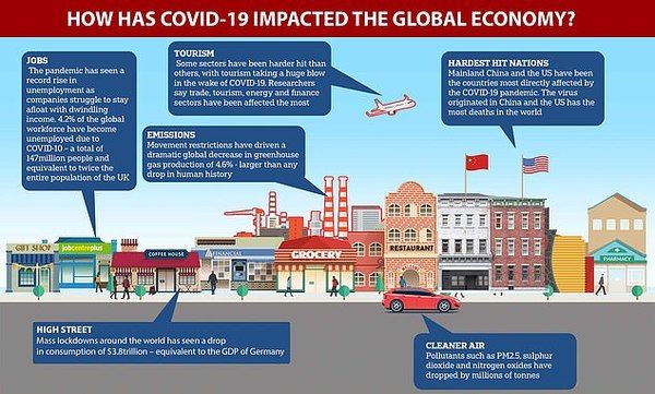 Researchers from the University of Sydney have created a detailed model of the global economy. They have found that the coronavirus pandemic and measures to slow its spread cost the global economy $3.8 trillion (£3 trillion), and put 147 million people out of work. The sector that has been worst hit is the travel industry of course. But the overall impact on the global economy is devastating. (Source)