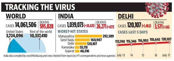 COVID cases are simply rising and rising. Perhaps due to increased testing. Global coronavirus infections passed 14 million on Friday. First time there has been a surge of 1 million cases in under 100 hours.