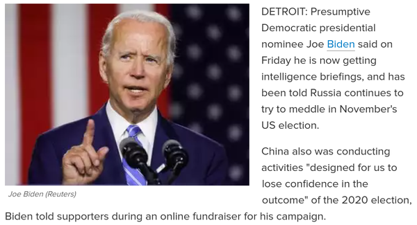 For someone whose campaign team has been hijacked by Islamists and extreme leftists, it is quite spectacular for Democratic nominee for the 2020 Presidential elections to talk about Russian meddling.