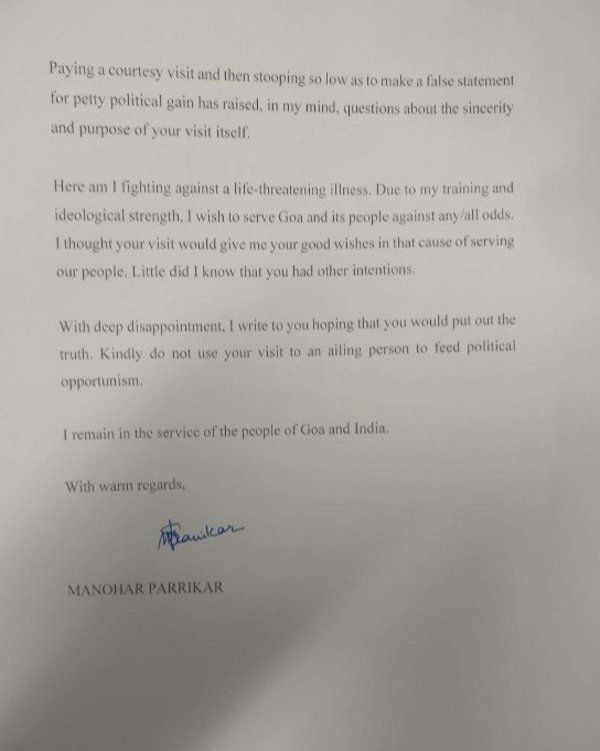This is the letter that Parrikar had to write from his deathbed at that time to counter the vicious campaign!!