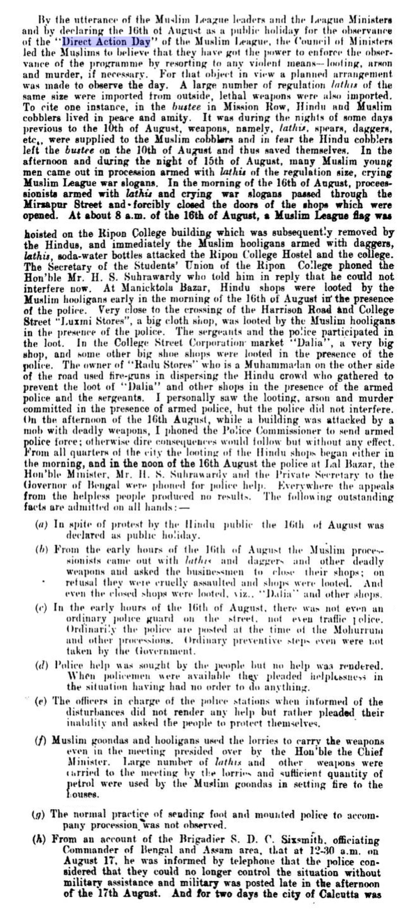 In fact, the legislative proceedings go on to show how the Muslim leadership worked to create obfuscation even when the evidence of who, how and why the massacres were started was very clear. Prior to the massacres on Direct Action Day, leaflets were distributed which clearly said what was going to be done.