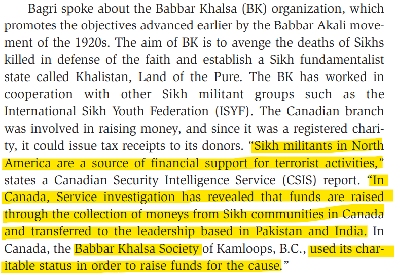 Canada's security and intelligence groups knew about the funding from Sikh terrorist organizations in Canada being sent to the groups in Pakistan and India to be used to target India.