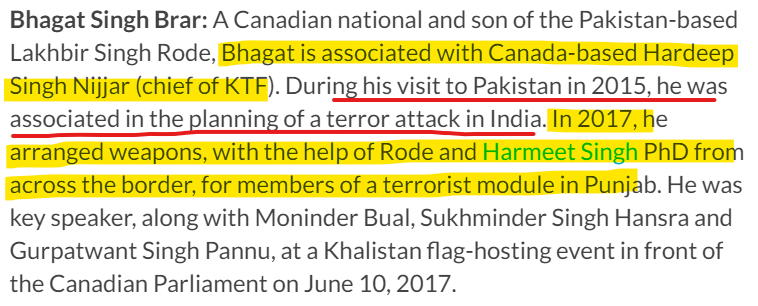 - Per detailed documents put together by all the Canadian Security Agencies, Bhagat Singh Brar and his business partner Parvkar Singh Dulai were “promoting extremism, including the radicalization of youth, with the aim of achieving Khalistan independence; and attack planning and facilitation, including weapons procurement, to conduct attacks in India."