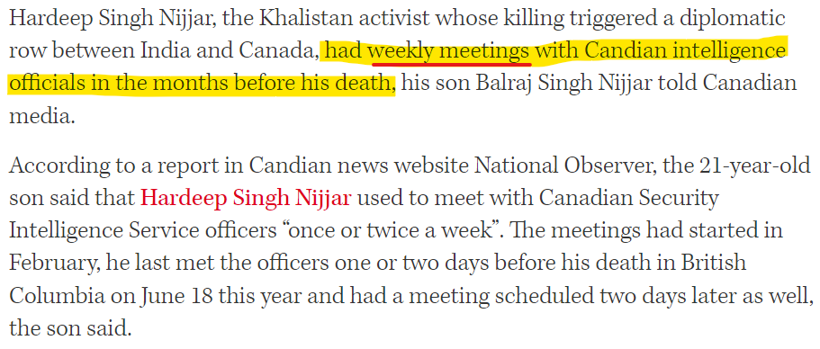 Nijjar's son shares something even more interesting. That the Canadian intelligence officials were meeting his father weekly!