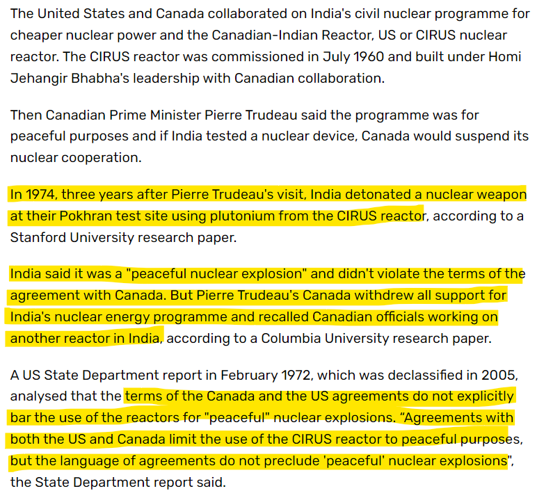 And, if that was not enough, Trudeau Sr used the flimsiest and fakest argument to stop all Indo-Canadian nuclear cooperation after the 1974 peaceful nuclear explosion by India.