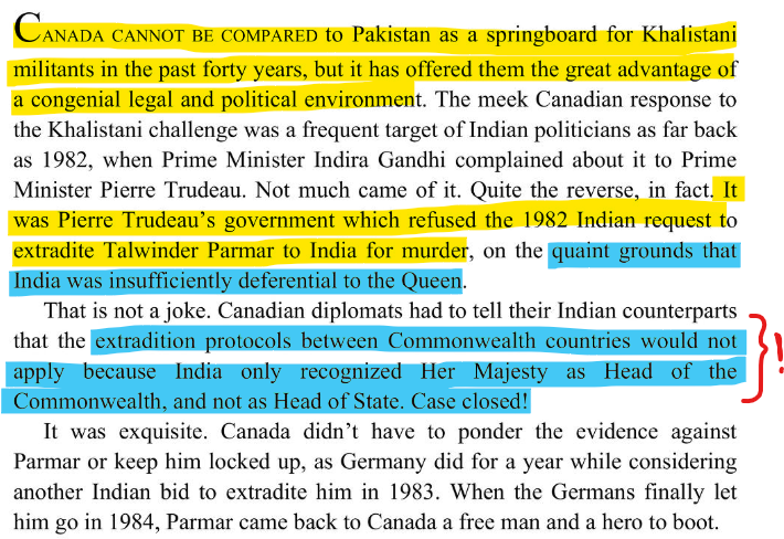 Pierre Trudeau, Justin's dad and Canadian Premier in the 1970s was an enthusiastic backer of Talwinder Singh Parmar, who had fled to Canada after killing two police personnel in Punjab in 1981.