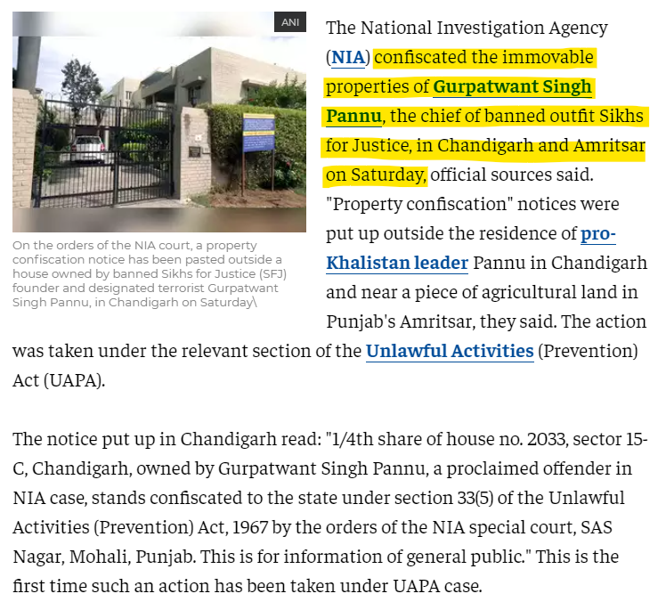 Properties of declared Khalistani terrorists in India have been seized.