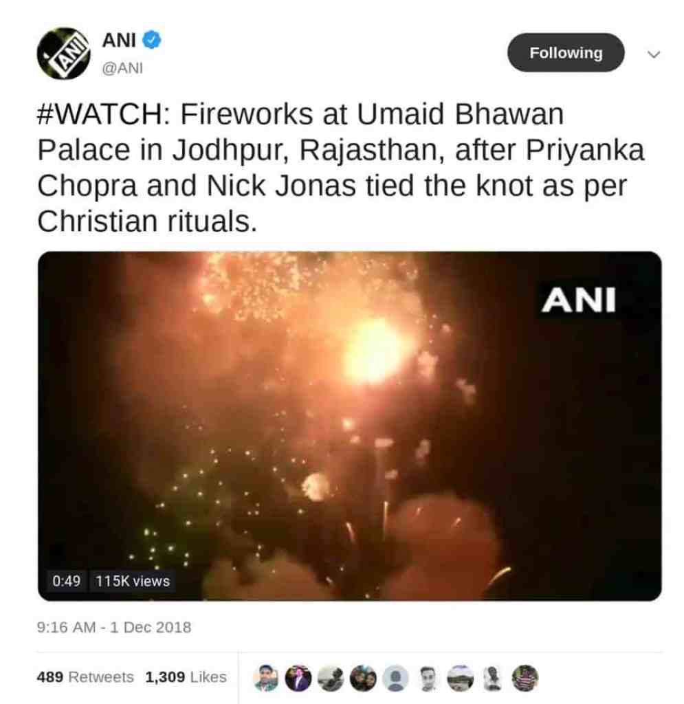 They were married at Umaid Bhawan amidst full fireworks – which Priyanka Chopra, btw, had warned against for Diwali celebrations, which in itself is very interesting!