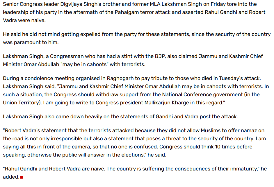 Some of the leaders within the party have now started speaking up against the stance by the Rahul Gandhi-led clique of Congress. Listen to MLA Lakshman Singh, who is the brother of Digvijay Singh.