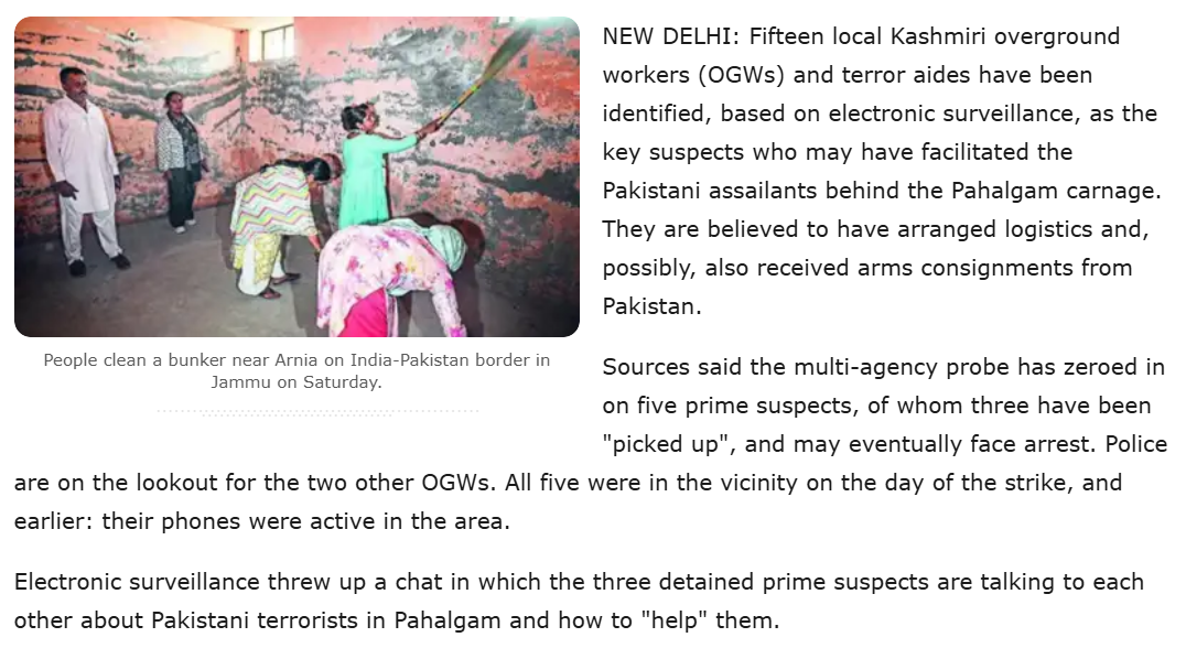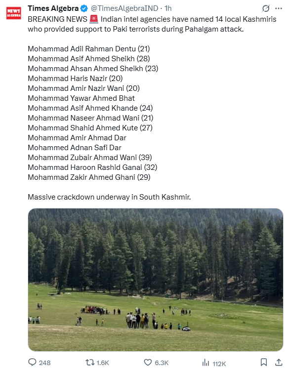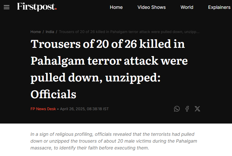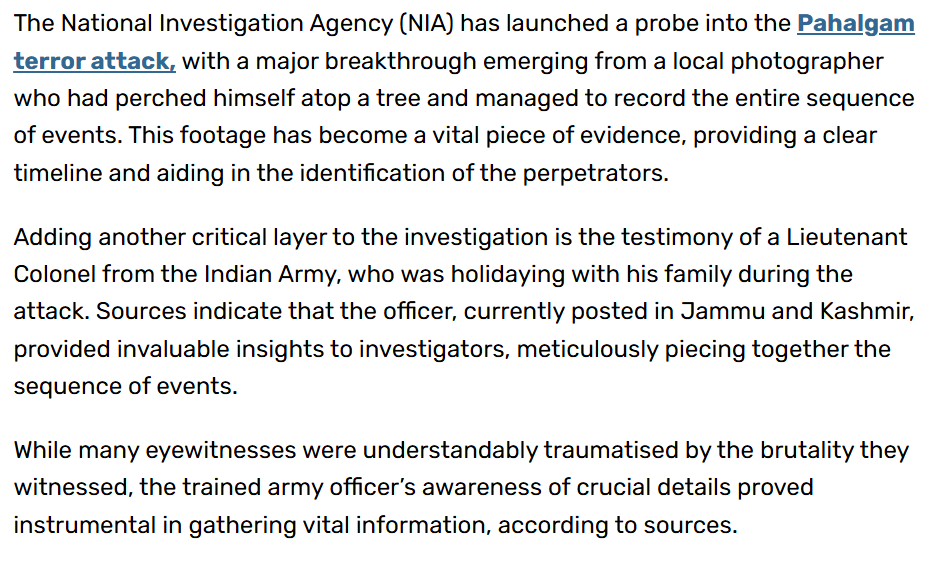 Indian media is reporting that the Pahalgam attack site was inexplicably opened to tourists by a "tour operator" on April 20th, just two days prior to the attack!