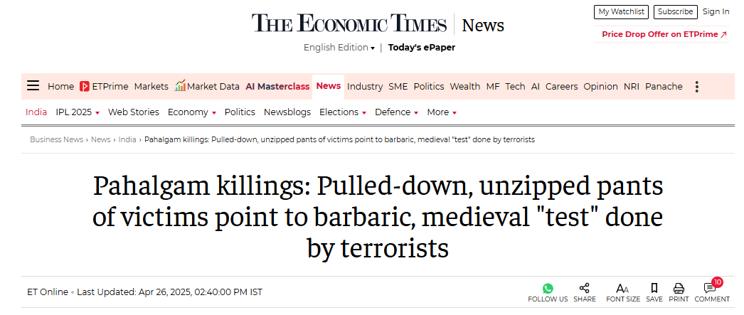 As Sandipan Deb, a veteran senior Indian journalist, says in his X post, the BBC almost insinuates that "India killed Pakistani tourists in Pahalgam"!