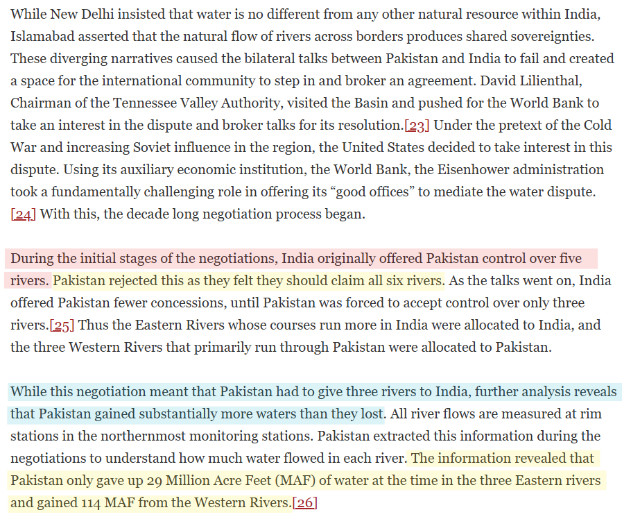 This article by Uzair Sattar illustrates how India initially offered Pakistan control of all five rivers. By the end, Pakistan was able to extract more water from India as well as international funding for building the infrastructure over the rivers! It does beg a question - who authorized and negotiated such a one-sided treaty from India's side?