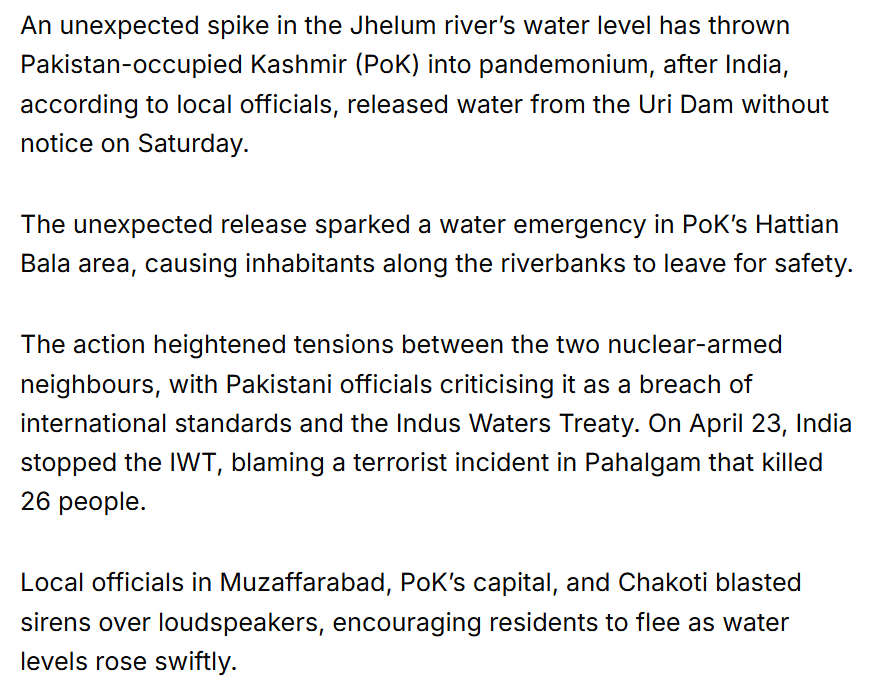 There are reports of Jhelum waters being released, causing the water levels to rise in Pakistan.