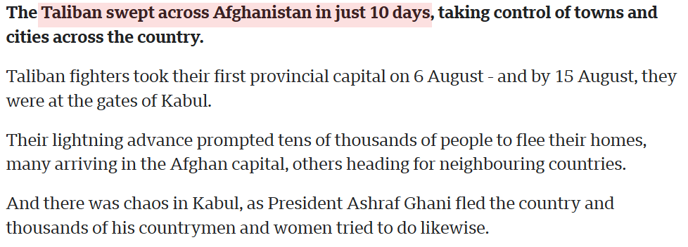 In that case, we may be looking at an encore of what happened in Afghanistan. The Ghani government and any opposition in Afghanistan folded within 10 days of US leaving.