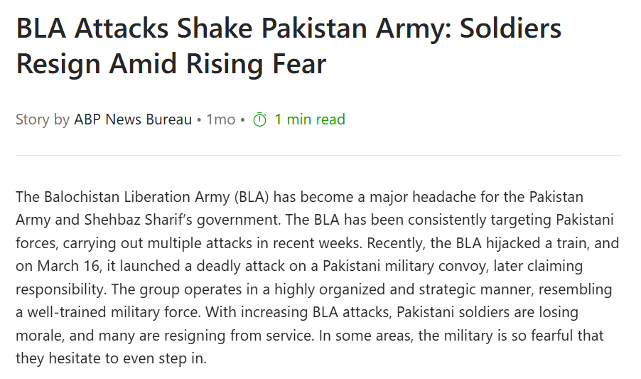 MSN shares ABP report that things have become worse as soldiers are resigning amidst rising fear in Pakistan, specifically due to Balochistan attacks.