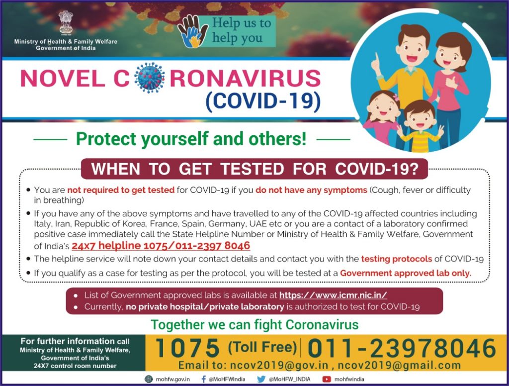On 21st March ICMR had issued revised guidelines for Covid-19 tests, saying that all asymptomatic direct and high-risk contacts of confirmed cases should get themselves tested once between day 5 and day 14 of coming in his/her contact.