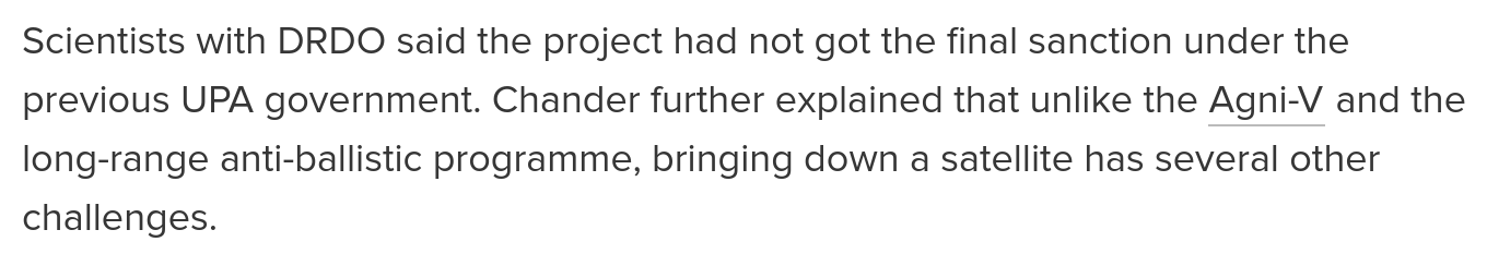 Here is the interview with the ex-DRDO chief which confirms the reporting from the UPA era.