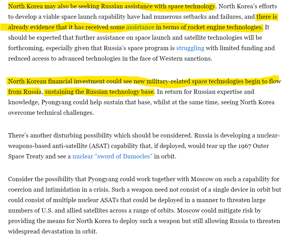 In return, Moscow could be providing North Korea with advanced military technology, including missile systems, or encouraging North Korea to escalate tensions with South Korea.