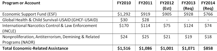 For sending the money to Pakistan, many different programs/organizations have been used. Here is the breakup for the providing the Economic funding from 2010 to 2014.
