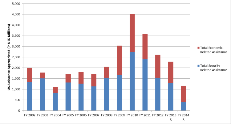 Between FY2002 and FY2009, only 30 percent of US foreign assistance to Pakistan was appropriated for economic-related needs; the remaining 70 percent was allocated to security-related assistance. In the period since the KLB authorization (FY2010 through the FY2014 budget request), 41 percent of assistance has been allocated for economic-related assistance —still not a majority of total assistance, but the increase over the preceding period does demonstrate the renewed commitment to Pakistan’s development embodied by the legislation.