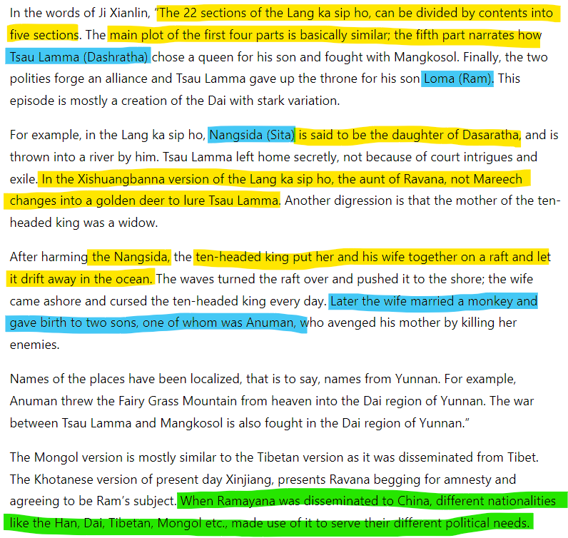 "Langka Sip Hor", where Langka is a derivative of Lanka. Nangsida in this story was Sita and Loma was Ram. The stories were very different and often influenced by the inter-group rivalries across the Chinese landscape.