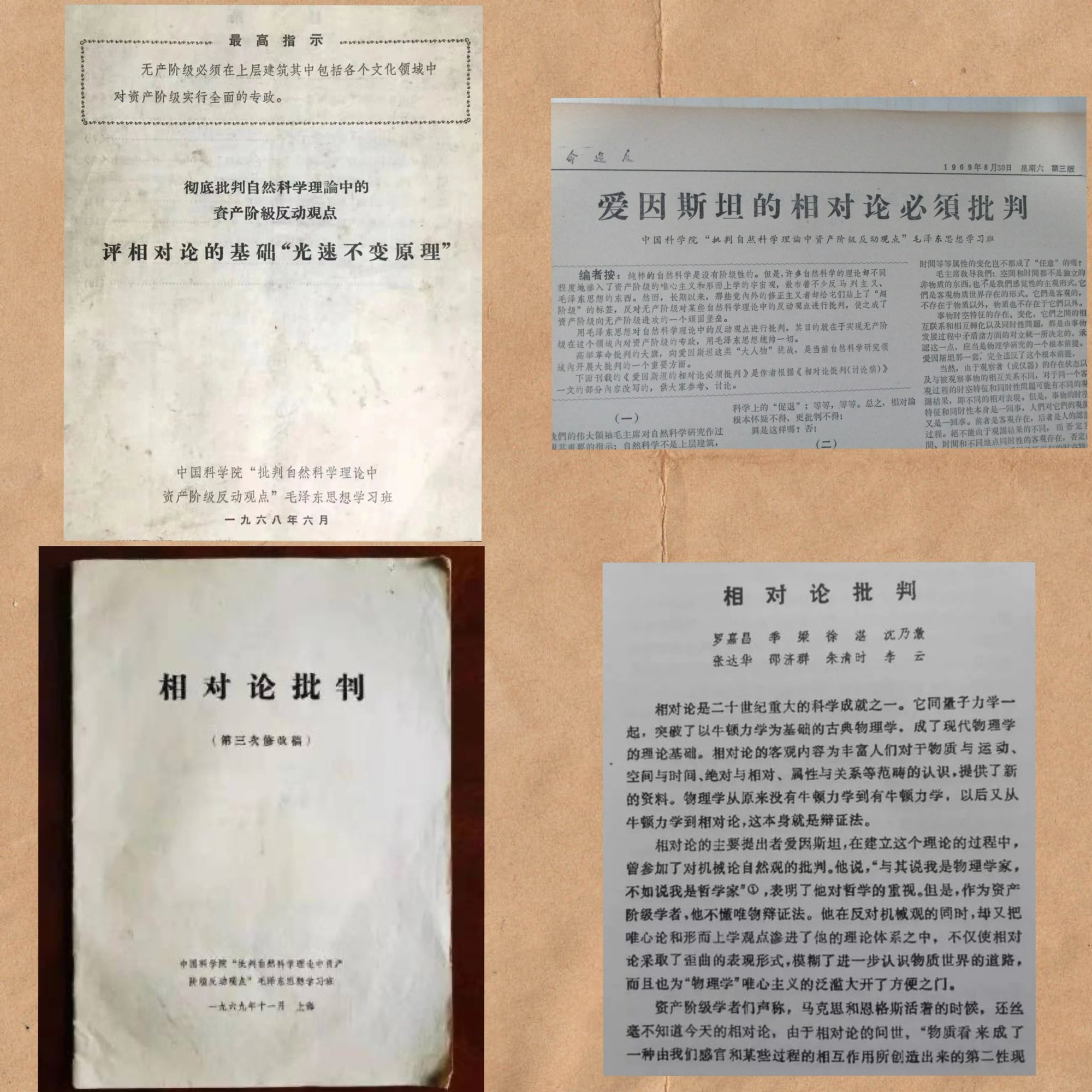 Beginning around 1968, radical Chinese ideologues launched coordinated campaigns targeting Einstein and his Theory of Relativity, with active involvement from the Chinese Academy of Sciences—as evidenced by the attached screenshots of related reports and articles.
