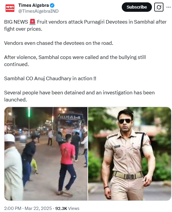 Recently, two disturbing incidents have shaken the region. During the auspicious Purnagiri pilgrimage, Hindu devotees—men, women, families—were violently attacked by fruit vendors. The imagery was chilling: devotees, barefoot and peaceful, being chased down roads by vendors, their crime being their faith and the procession they were part of. What should have been a serene spiritual journey turned into chaos, forcing authorities to impose curfews. But this was no isolated event. It was symptomatic of something far deeper.